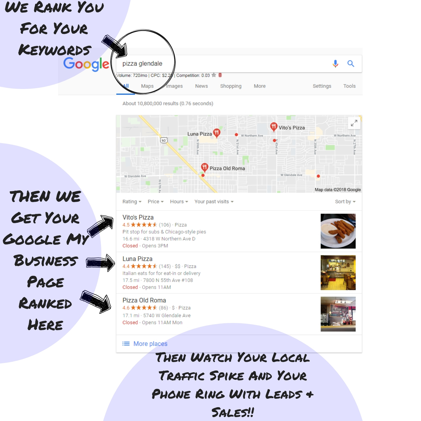 Google is the world’s most popular search engine. Long gone are the days of using phone books and the yellow pages to search for local businesses in your area. Thousands upon thousands of people in Wisconsin use Google daily to search for local restaurants, local services, local products, and local businesses in the Green Bay area to meet their needs. These are customers already interested, taking action, and ready to buy using Google to search for your services and ready to do business with you… but there’s just one problem. Are you even showing up organically in the Google Maps search results? Do you have an optimized Google My Business Listing with great reviews, consistent and updated business info, and content rich descriptions with your keywords strategically placed in your GMB listing? Were you even aware that you could leverage Google to increase your business’s online presence and drive direct traffic & sales to your business? Think about all that online traffic that you’re currently missing out on and imagine an optimized GMB listing causing your phone to ring with fresh new leads if you were ranked in the top 3 Google Map Pack? How would you like to get your business ranked in Google’s Top 3 Map Pack, completely hands free, while seeing HUGE returns of investments with an effective GMB SEO Campaign?